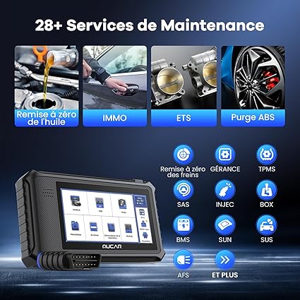 - 28 services de réinitialisation : huile, EPB, BMS, SAS, ABS bleed, TPMS, DPF, etc. (selon véhicule).